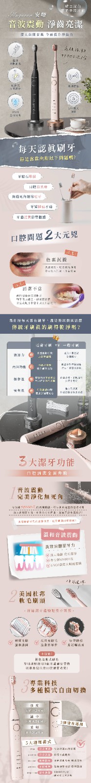 12分鐘前微笑從齒開始!Anqueen安晴臻至潔白智能音波電動牙刷AQ-B101 - 粉色款