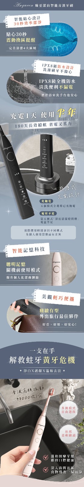 4分鐘前微笑從齒開始!Anqueen安晴臻至潔白智能音波電動牙刷AQ-B101 - 黑色款